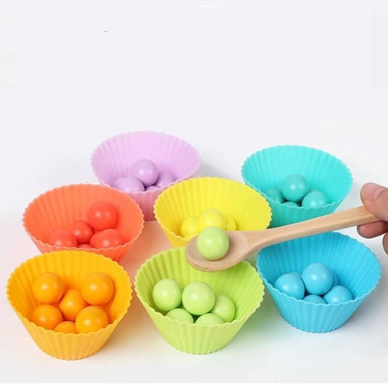 Let them familiarize each bead color and guide your kid by color-matching pearls with silicone cups.